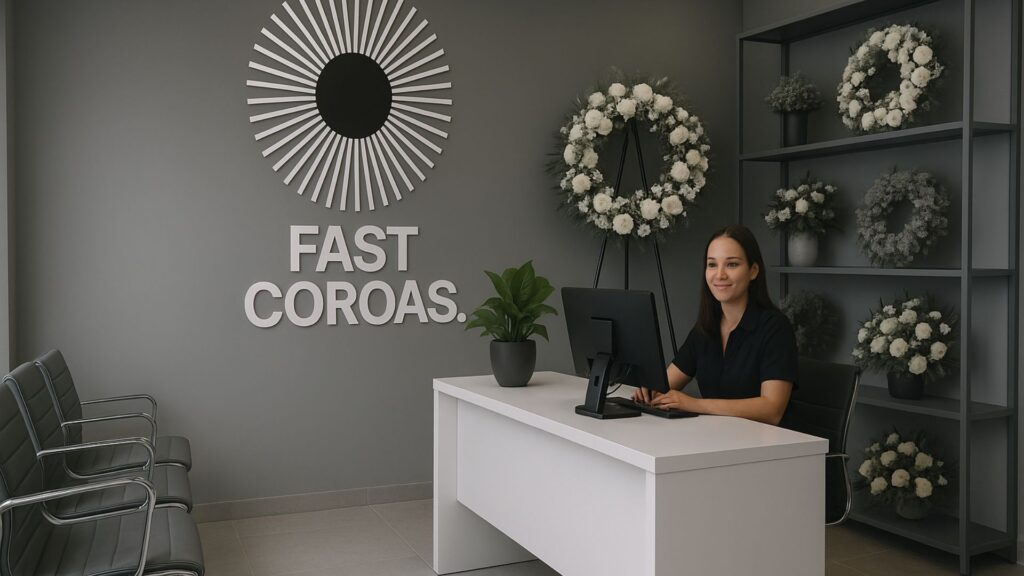 Somos a Fast Coroas de Flores, floricultura 24h especializada em entrega de coroa de flores em Goiânia com rapidez, cuidado e respeito. Trabalhamos todos os dias, inclusive à noite, fins de semana e feriados, sempre prontos para ajudar em momentos delicados.
